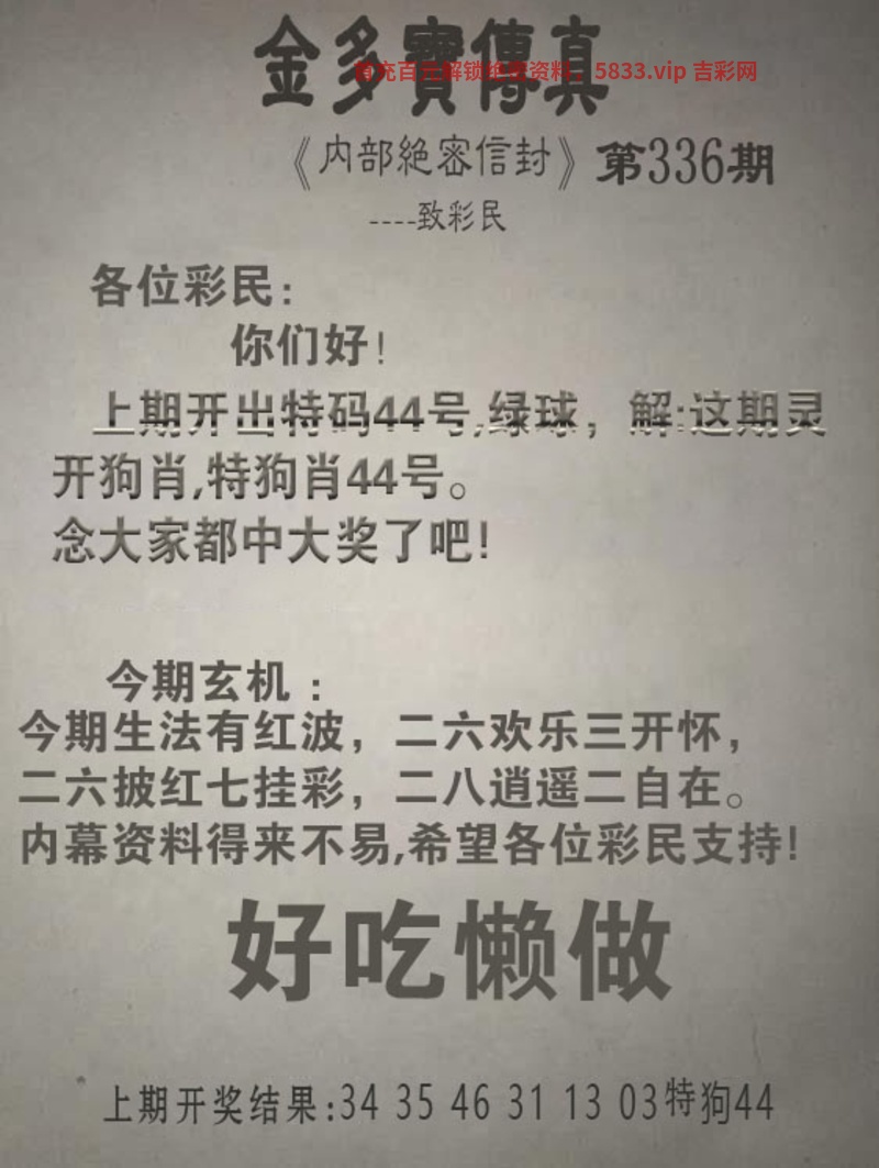 | 336期:祥彩联盟530.com为5833网投担保 | |||